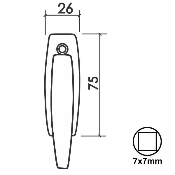 Ručica za prozore MINI-P F1 7x7/33/26x75x8/34/92mm DBP1