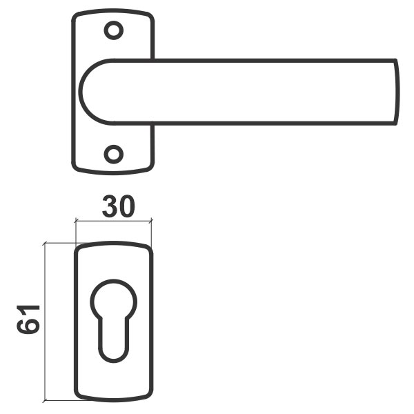 Kvaka rozeta za metalna vrata JACA Siva 30/61/6/105/9mm Cil DBP3